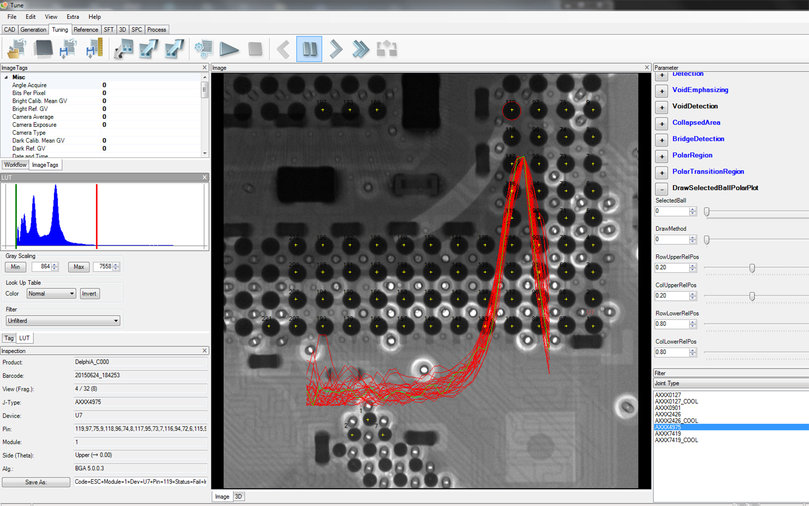 The MIPS-Tune Image Processing System is a MatriX proprietary software unit for off-line test program generation in automatic x-ray inspection of electronic devices and parts. The software uses an inspection model library for test strategy definition. A pin and fragment related assignment of one or more inspection strategies is supported to achieve optimum test coverage for all assemblies. MIPS-Tune supports the automatic generation of inspection lists based on automatic CAD import, as well as on simple pick and place like data, on component centre data. After tuning of the parameters, test simulations do generate measurement values needed for the definition of rules. An integrated classifier serves for manual or automatic generation and validation of rules. MIPS-Tune is one module of the MatriX Inspection Process Software MIPS that covers the whole inspection process. It offers links to all other MIPS modules as e.g. the verification unit MIPS-Verify for inline or offline verification and MIPS-SPC Tool. Both modules provide important information needed for fine tuning of the inspection parameters.