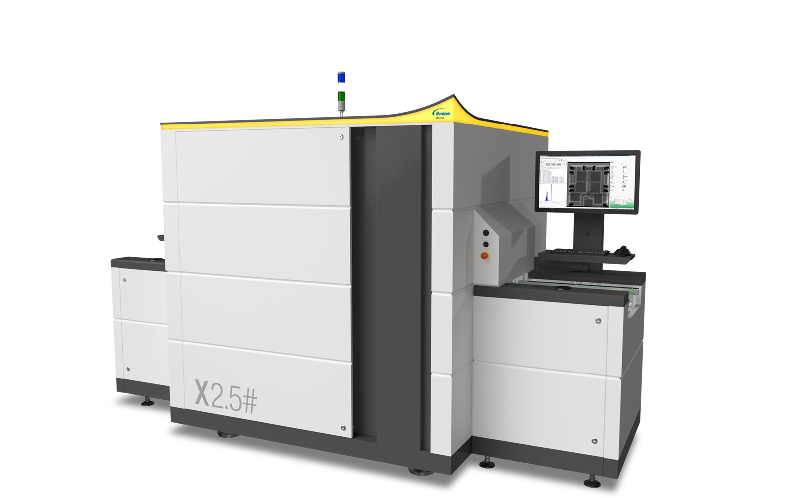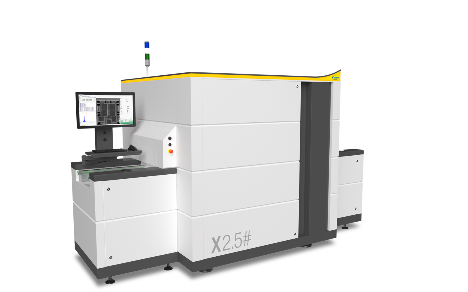 The MatriX X2.5# is an automated inspection system designed for sophisticated high-speed inspection in SMT production. Transmission X-ray technology with patented Slice-Filter-Technique (SFT) and Off-Axis technology present a reliable solution for the inline inspection of double-sided PCB assemblies. The X2.5# movable detector axes allow high-speed off-axis image acquisition from different angles and directions with maximum image quality and resolution.