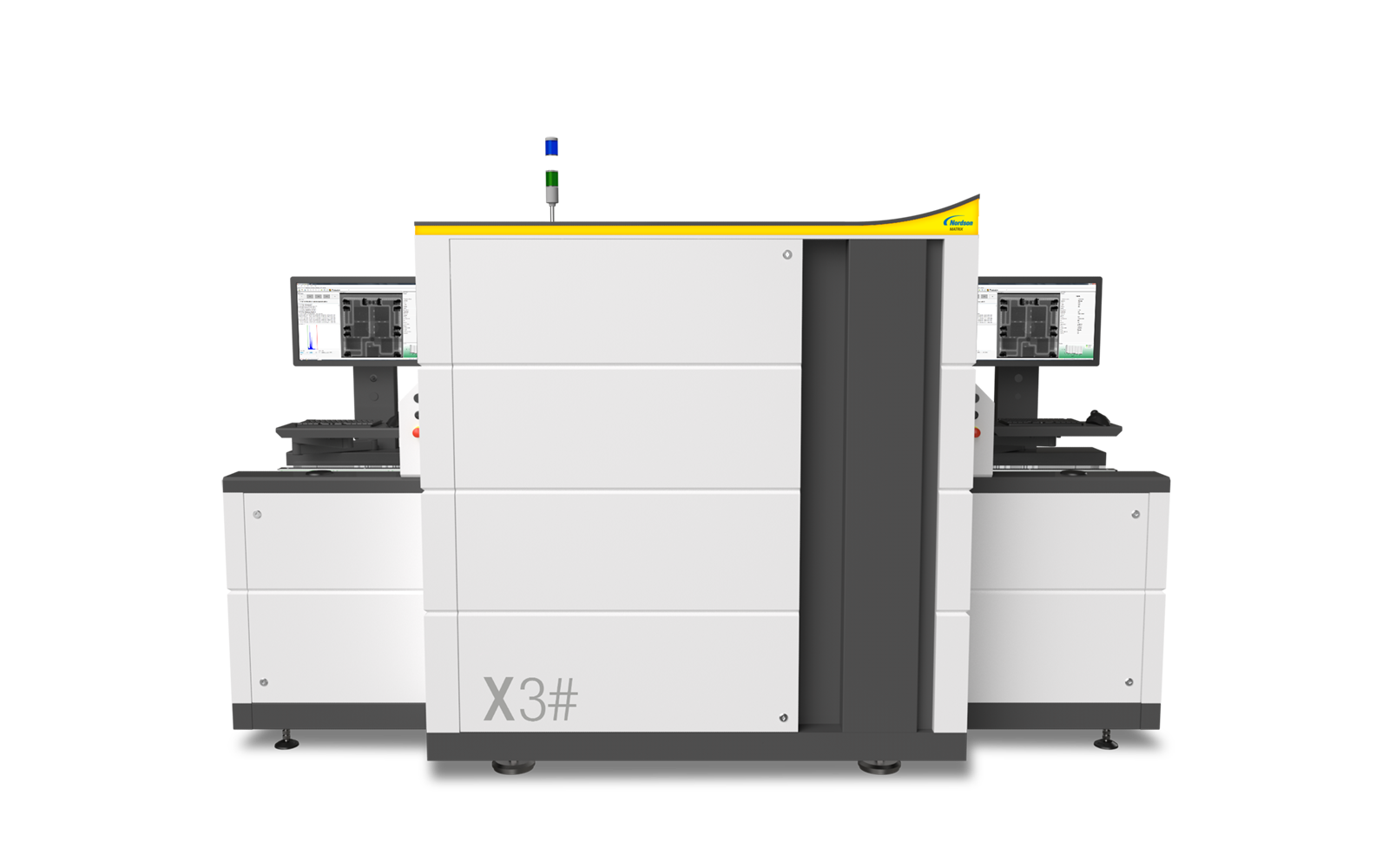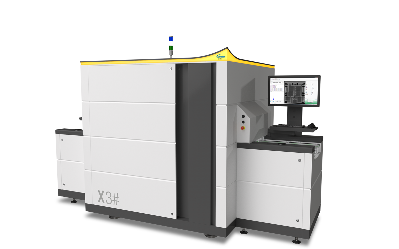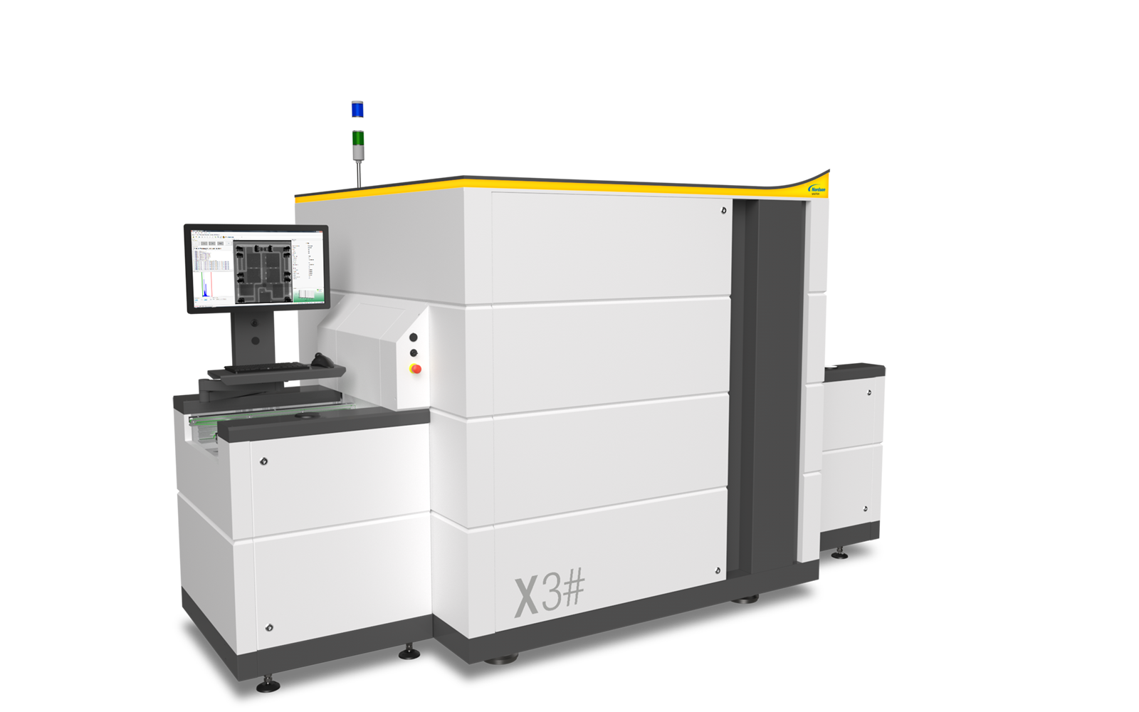 The MatriX X3# is an automated inspection system designed for sophisticated high-speed inspection in SMT production. Transmission X-ray Technology with patented Slice-Filter-Technique (SFT), Off-Axis technology and 3D SART present a reliable solution for the in-line inspection of double-sided PCB assemblies. The X3# movable detector axes allow high-speed off-axis image acquisition from different angles and directions with maximum image quality and resolution.