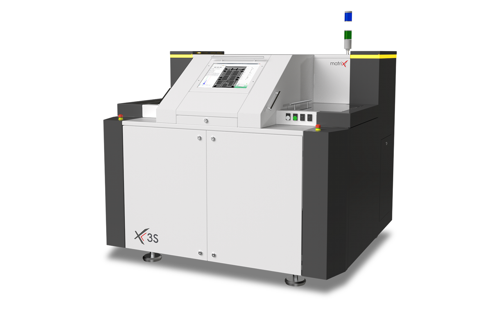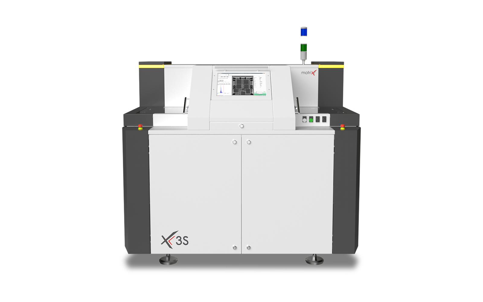 The MatriX X3-S is an automatic X-ray inspection system featuring combined Transmission and 3D-Technology for sophisticated high-speed inspection in electronic production. The system is based on the MatriX X2.5 AXI system platform but is equipped with an additional detector axis used to generate the angle-shot images for the 3D reconstruction. This newly developed 3D reconstruction software generates high resolution slice images for 3D analysis of solder joints. Main applications are double-sided boards with critical overlapping areas.